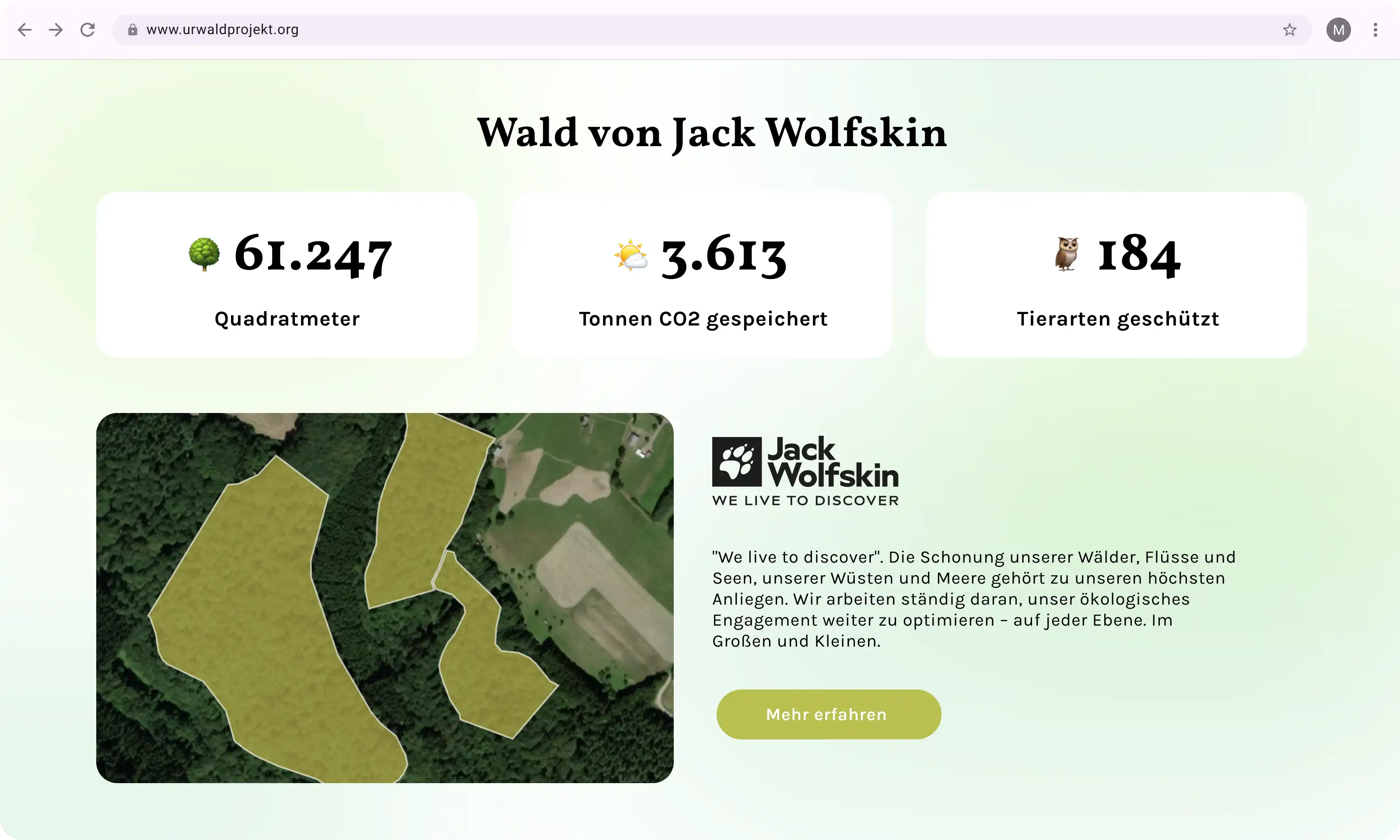 Wir helfen Ihnen bei der Kommunikation mit Ihren Kundinnen und Kunden. Hierfür haben wir eine einzigartige Webanwendung entwickelt, die maximale Transparenz schafft. Ihr firmeneigenes Schutzgebiet wird auf einer interaktiven Karte exakt eingemessen und kann jederzeit von Kunden und Mitarbeiter*innen besucht werden. Ein erlebbares Schutzprojekt mit maximaler Transparenz hier in Deutschland. Für diese Maßnahme zum Schutz von Klima und Biodiversität stellen wir Ihnen gerne eine eigene Waldretter-Seite zur Verfügung, auf der alle Informationen zum eigenen Schutzgebiet übersichtlich aufbereitet sind. Neben mehreren abgeschlossenen Forschungsarbeiten starten wir 2025 mit einem langfristigen Biodiversitätsmonitoring via KI-Sensoren, die 24/7 die Biodiversität via Akustik überwachen. Diese Daten können wir Ihnen auf ihre eigene Landingpage in Echtzeit ausgeben und für Ihre Nachhaltigkeitsberichterstattung aufbereiten.